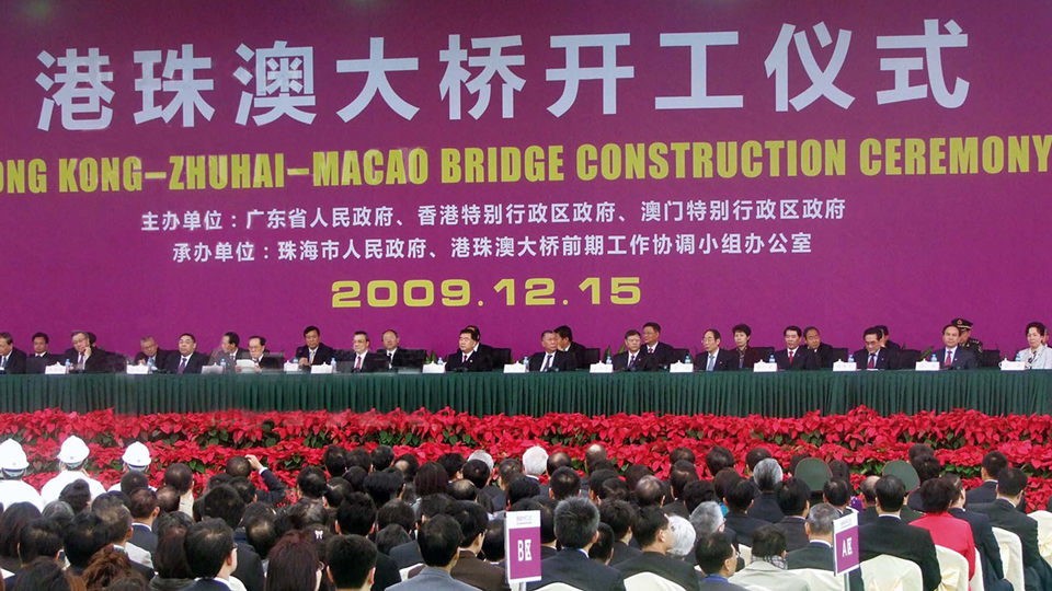 在澳門回歸祖國十周年之際,中共中央政 治局常委、國務院副總理李克強 12 月 15 日 上午在廣東珠海出席港珠澳大橋工程開工儀式, 宣布工程開工,與粵港澳代表、工程建設者和 當?shù)厝罕姽餐娮C大橋開建的歷史性時刻。他 強調,要認真貫徹落實中央經(jīng)濟工作會議精神, 加快基礎設施建設,推進區(qū)域經(jīng)濟一體化,不 斷改善發(fā)展環(huán)境、增強發(fā)展動力,形成更具國 際競爭力的區(qū)域經(jīng)濟發(fā)展新格局。